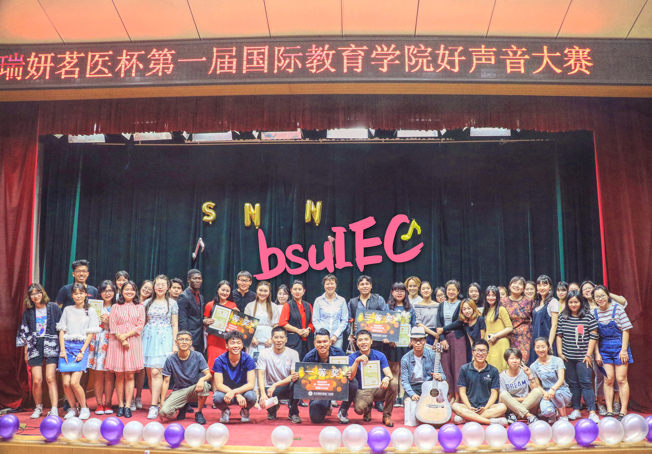 第一届国教好声音落下帷幕 发布时间:2017-05-10 2017年5月9日晚,国际教育学院第一届好声音比赛在老员工活动中心举行。国际教育学院田青副经理应邀出席了本次活动。校园十佳歌手刘毅妍、张希、胡华,吉他社社长韦恩剑,B-Box社社长邓宏远,以及赞助商北京瑞妍茗医皮肤美容科主任李萍担任评委。 比赛在一场英姿飒爽又美轮美奂的双节棍表演下拉开序幕。首先出场的胡馨宇和钱奕豪(中国台湾)用如同倾诉般的歌声演绎了《简单点》。随后吉他的“波浪音”与磁性的男中音搭配表演《我的心里只有你没有他》深深的感染了台下观众。本次国教好声音共有十组参赛选手,每位选手都深情投入,歌声悠扬、舞姿优美,给观众奉献了一场视听盛宴。观众也深深融入现场,一声声的加油口号,也将比赛一次次的推向高潮。随着评选结果的公布,本次比赛也在一片欢乐的气氛中画上了句号。 评选结果如下: 一等奖:刘夕冉&武梨维英(越南)《美人鱼》 二等奖:周祎&晴天(西非多哥)《红玫瑰》 三等奖:林胜概&Christian j gonzàlez c(玻利维亚)《我的心里只有你没有他》 优秀奖:胡馨宇&钱弈豪(中国台湾)《演员》;黎孟强(越南)&贾诗 《美丽的神话》;孙皓璋&川岛直央(日本)《伤心的人别听慢歌》;赵益萱&黎玉庆(越南)《曾经心痛》;胡爱莲&林凡恩(中国台湾)《我真的受伤了》;周恒帆&陈茗玉(中国台湾)《小手拉大手》;马睿&李允范(韩国)《雪之华》