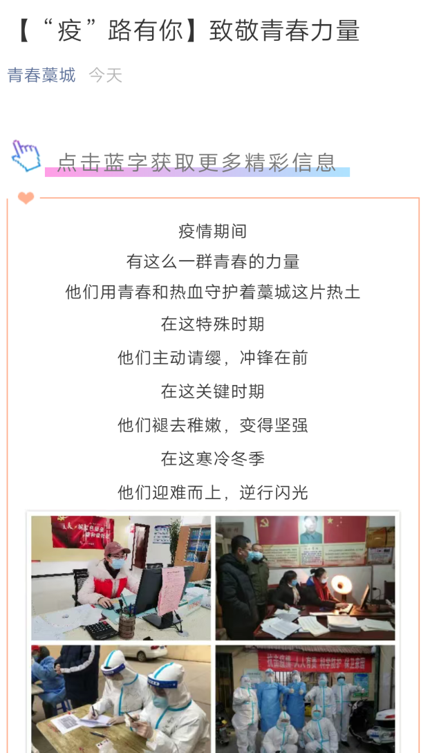 没有人生而英勇,只有选择无畏。疫情终将过去,我相信有政府的正确指挥,志愿者的勇敢坚守,属于藁城的春天定会很快到来!