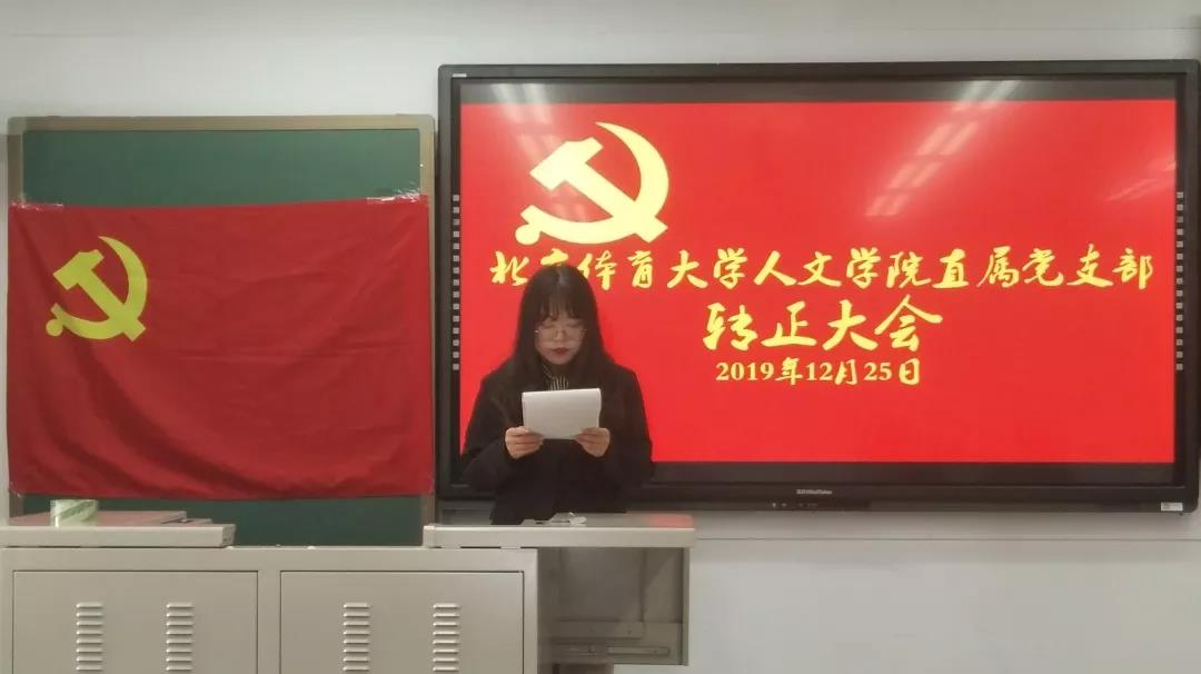 2019年12月25日13时,北京体育大学yl7703永利集团直属党支部在教学楼501教室召开支部大会。大会由李滨同志主持,主要议题为讨论黄鑫源等四名预备党员的转正问题。