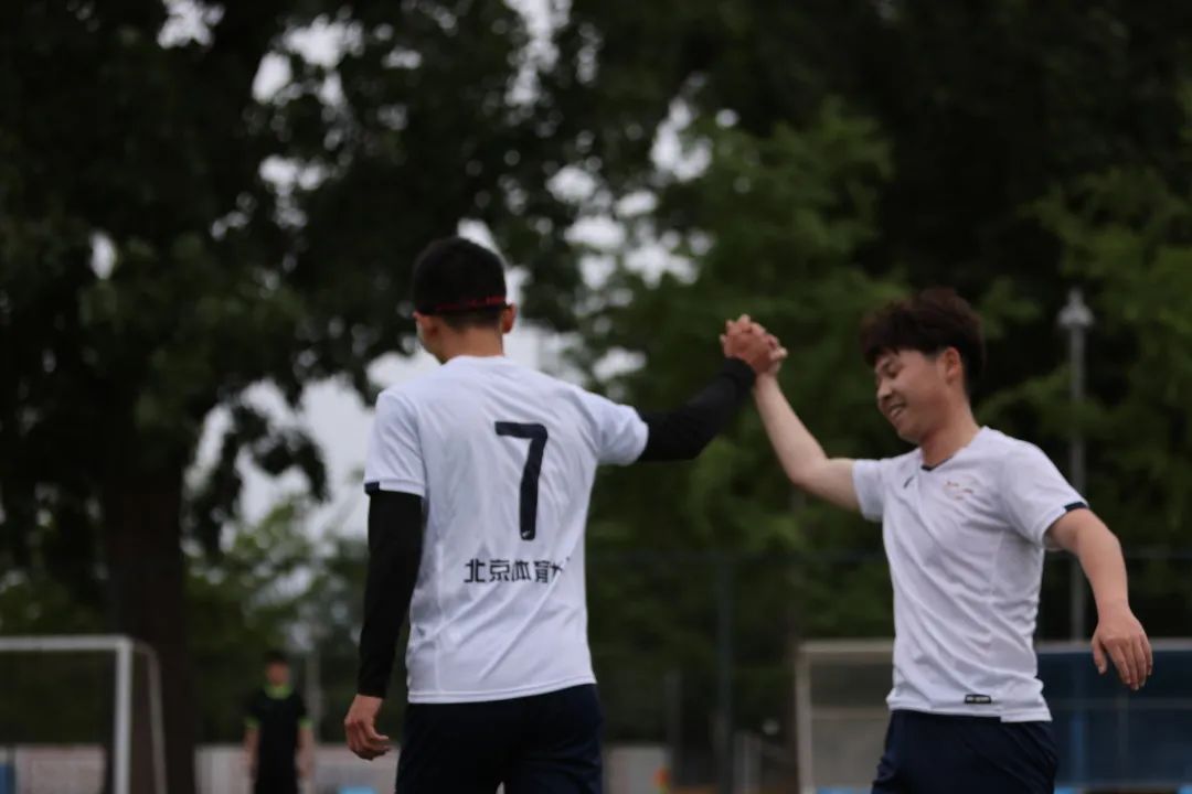 的确如此,自建队以来,人文男足保持着周中训练,周末比赛的“作息”。每到周末比赛日,在啦啦队的呐喊声中踏上洒满阳光的绿茵场(然而比赛日当天没太阳),成为了很多男足队员的习惯。花式庆祝、商业互吹和比赛后的推送也成为每一周的保留节目。也许为体育强国作建设的目标离我们太远,但当足球融入到我们的生活中时,也会让生活充满未知、充满动力,这大概就是足球的魅力、体育的魅力吧。