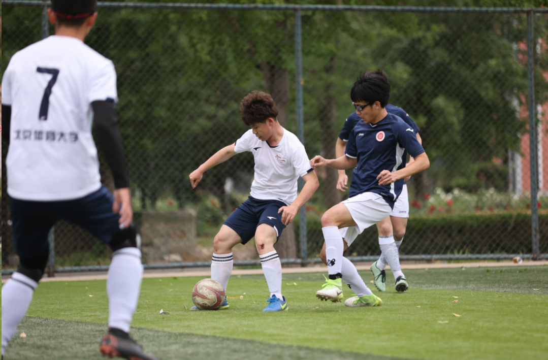 随着裁判的哨声响起,双方正式开始了对决赛名额的争夺。本场对手——竞技体育学院男足开场就展现了他们优异的身体素质,对球门发起冲击。