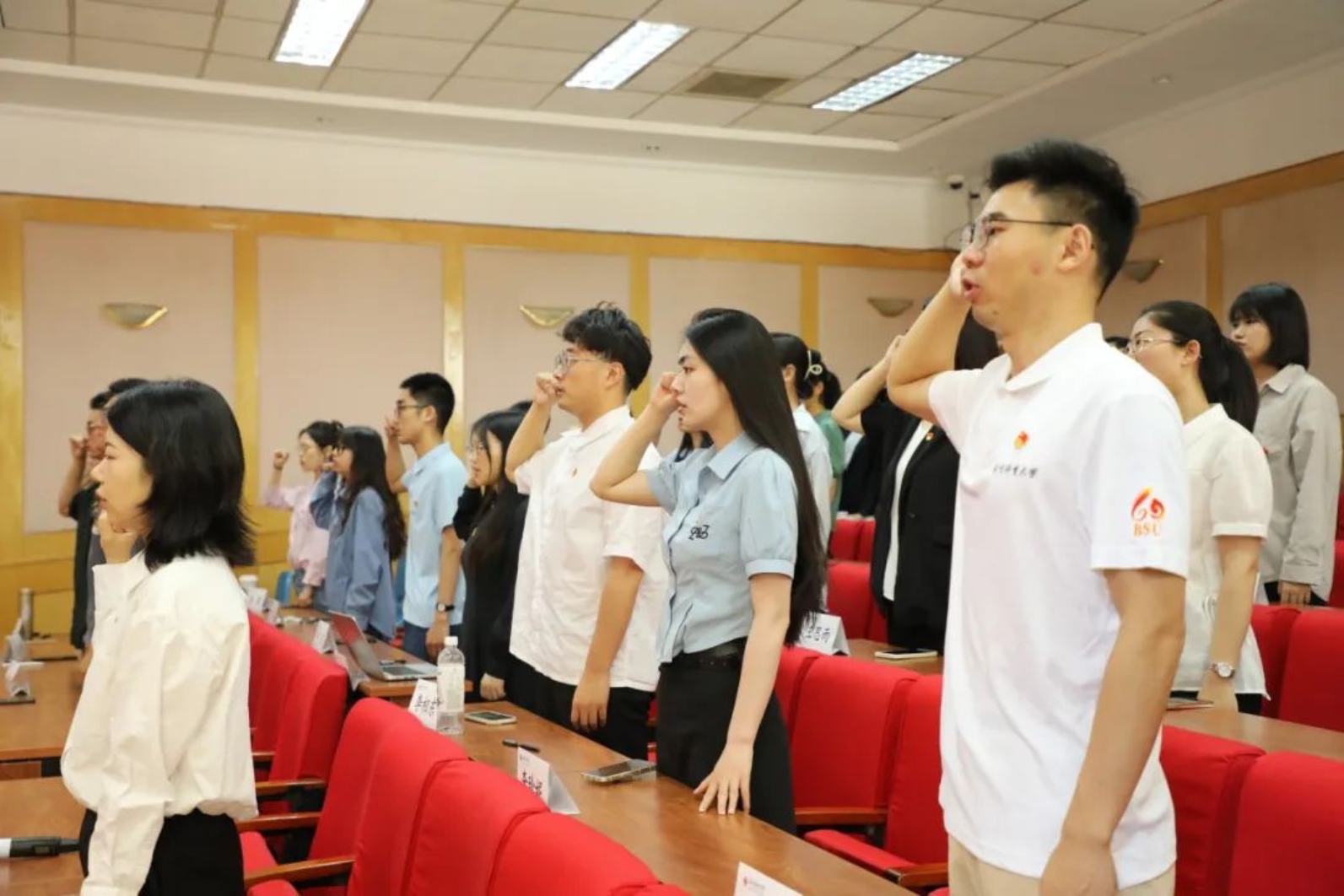 经入党介绍人介绍发展对象基本情况、党支部书记报告政治审查意见、与会党员充分讨论后,支部大会对是否接收十名同志成为预备党员进行了无记名投票,投票结果为同意接收何延等十名同志为中共预备党员。接着,全体同志在领誓人的带领下面对党旗庄严宣誓。