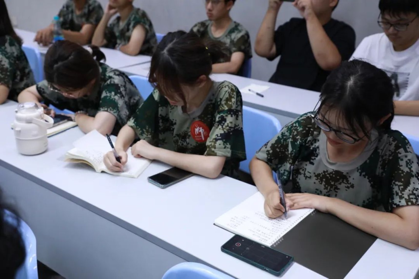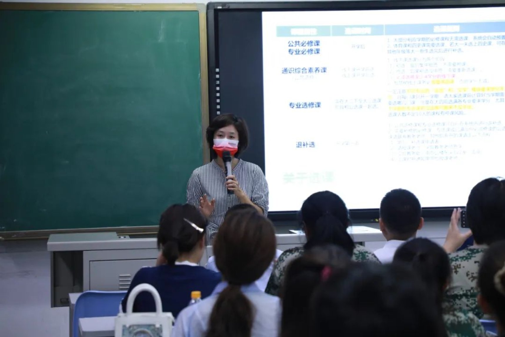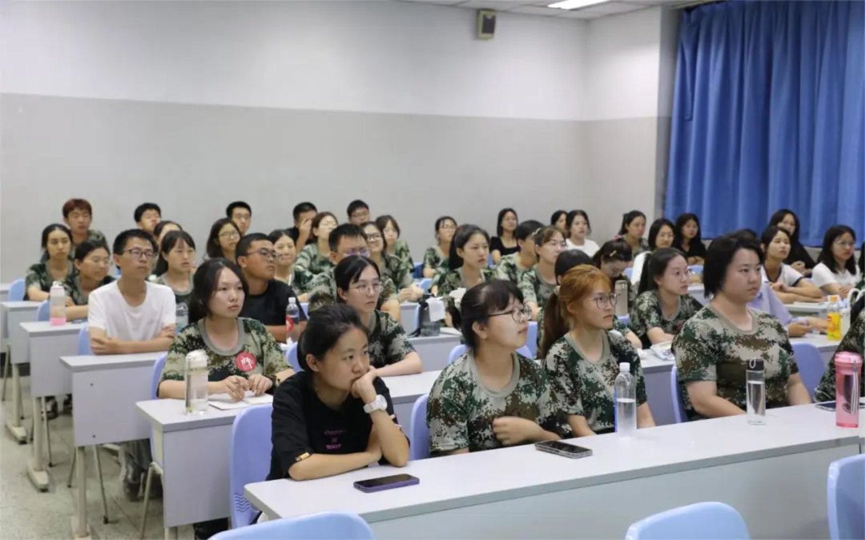 郭老师讲解期间,新生同学们专注听讲,听到关键的地方纷纷拿手机或纸笔记录。每位同学都在为自己的未来认真规划。