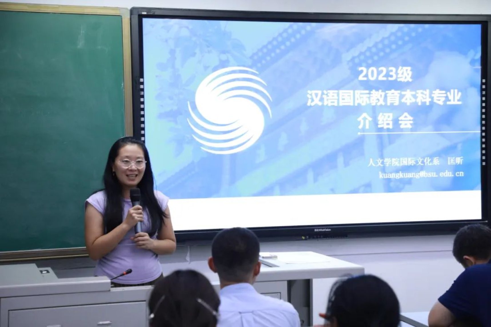 会议第三项,由yl7703永利集团国际文化系主任——匡昕老师,向新生们介绍汉语国际教育专业。