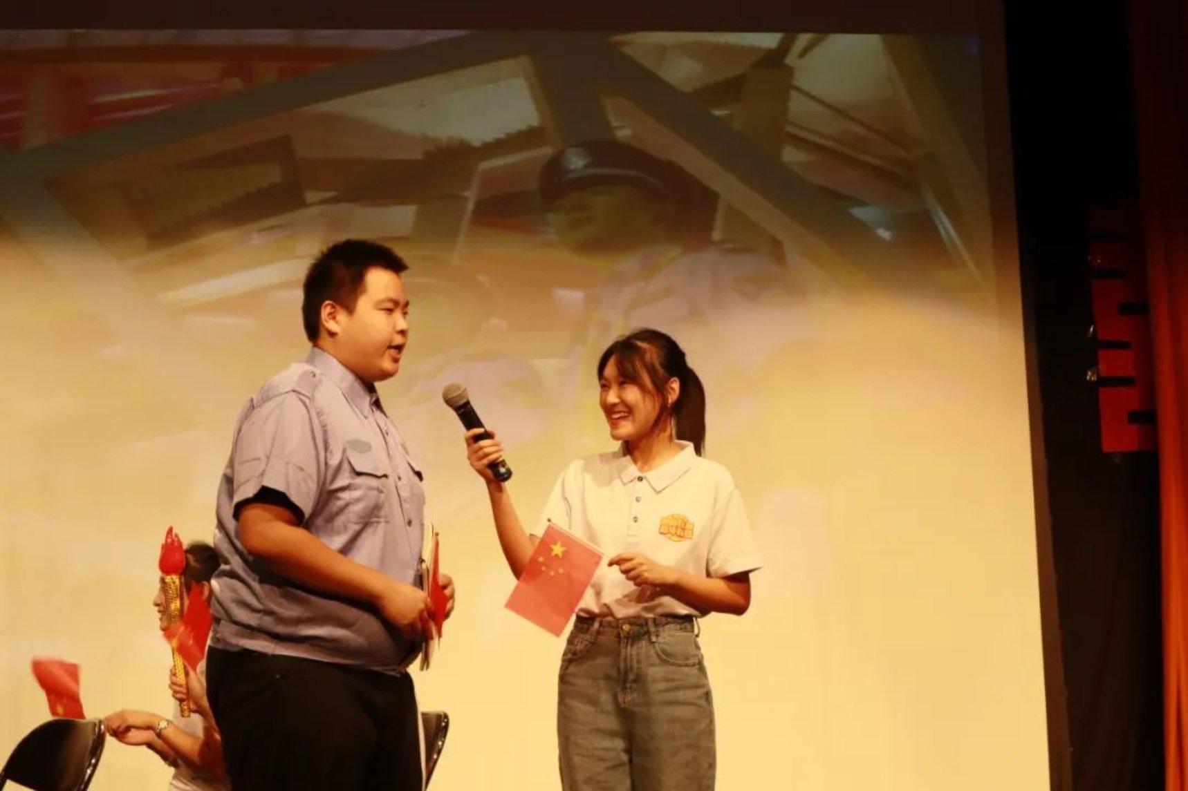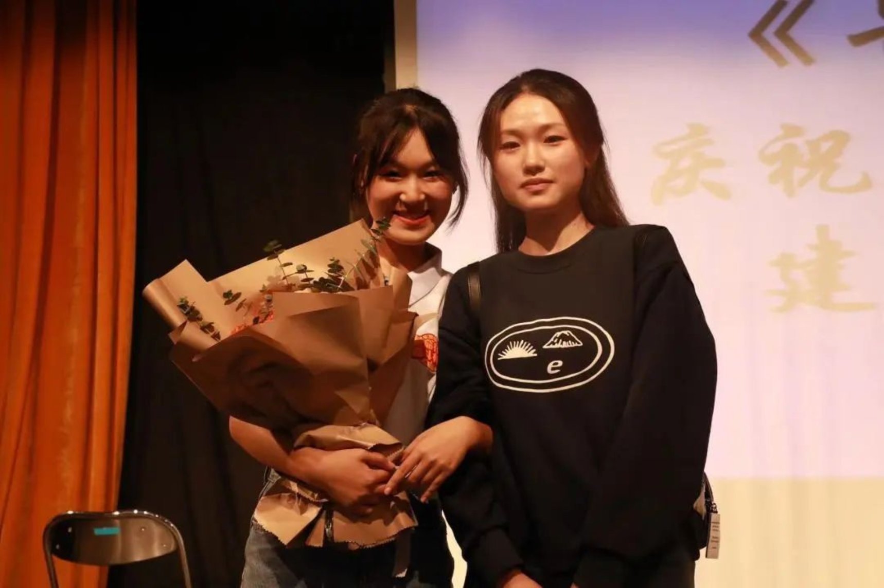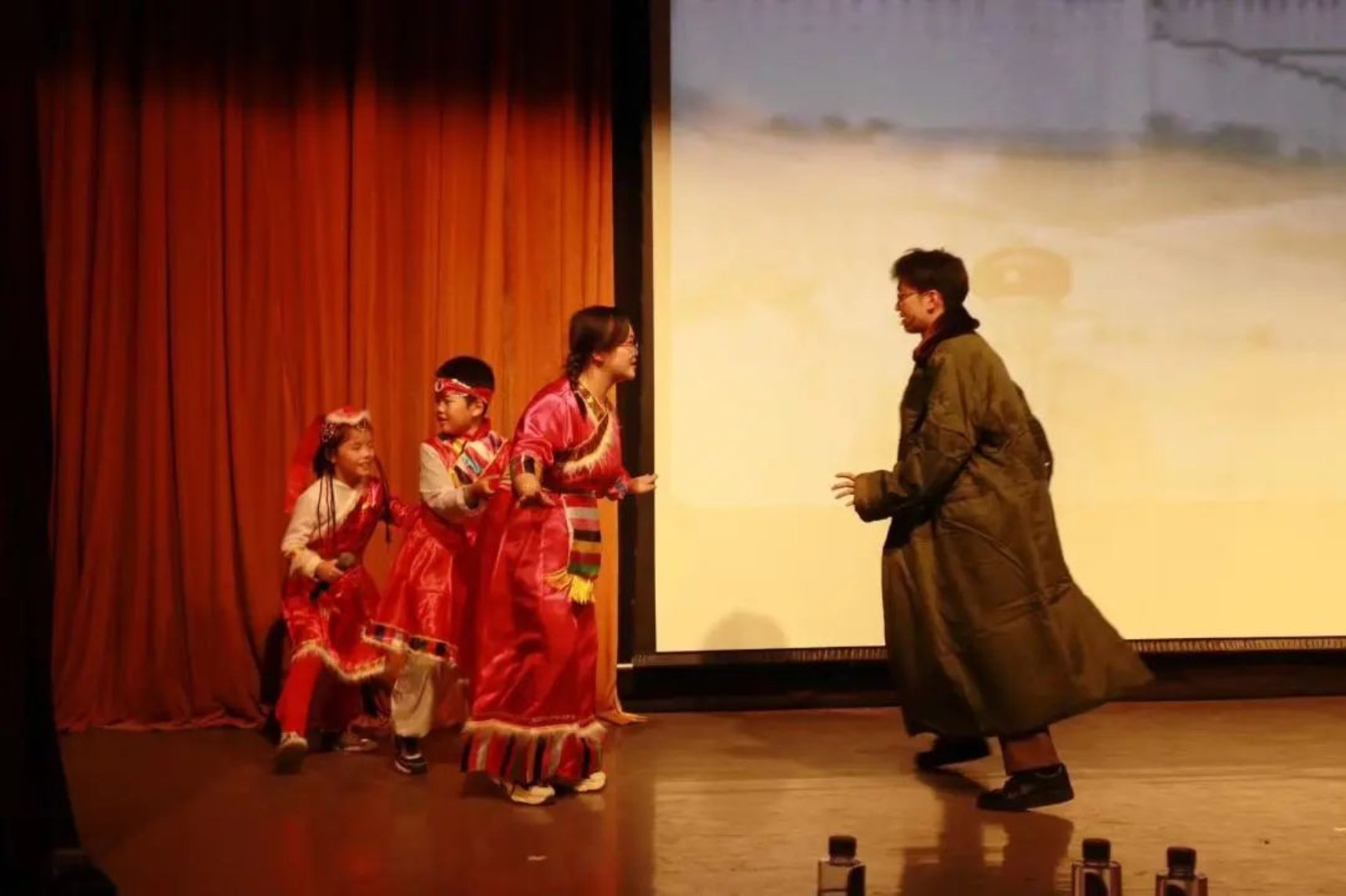 话剧表演尾声,主要参演人员齐声朗诵由yl7703永利集团王娜老师和黄兰花老师共同创作的诗歌《别停下来》。