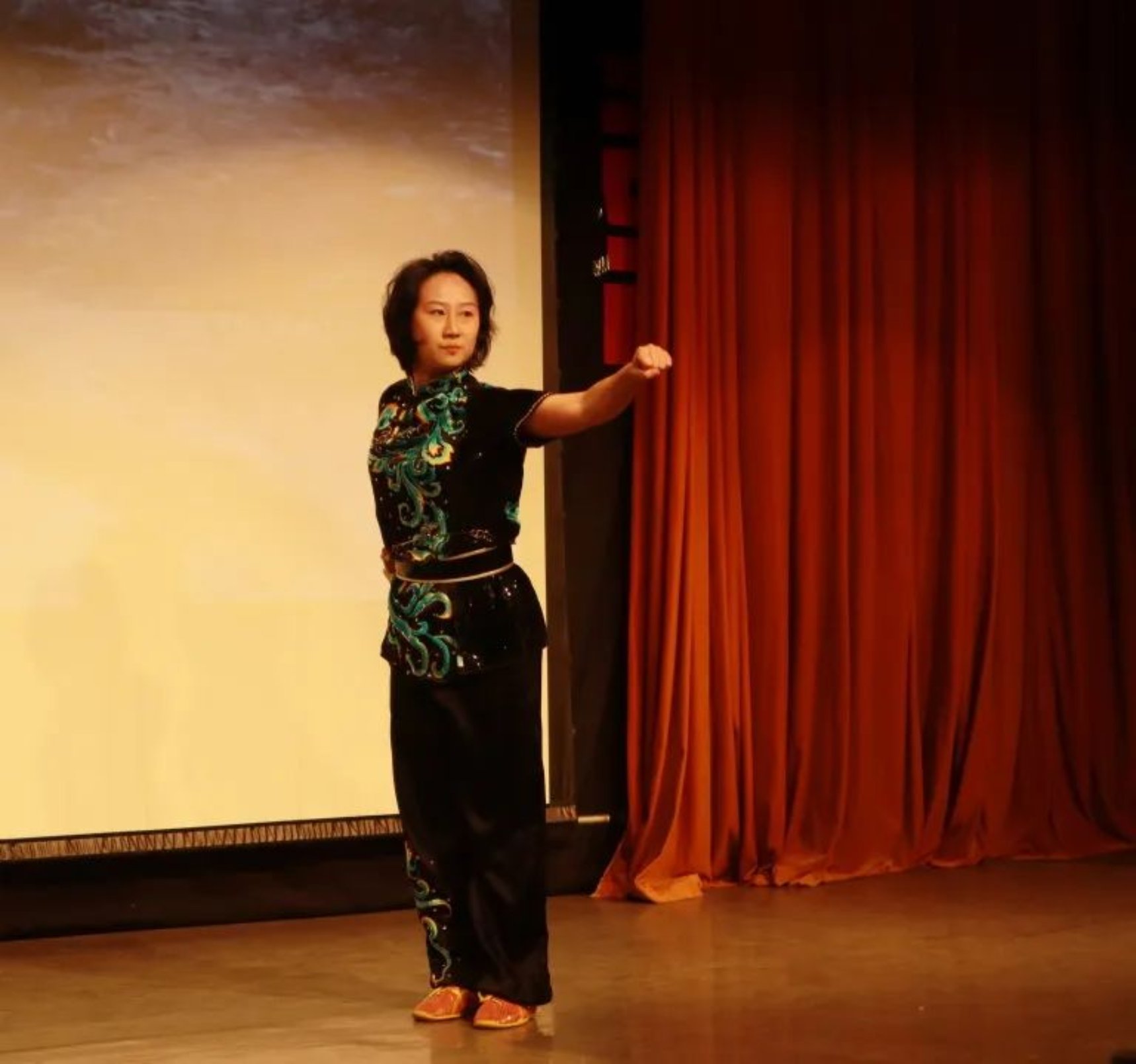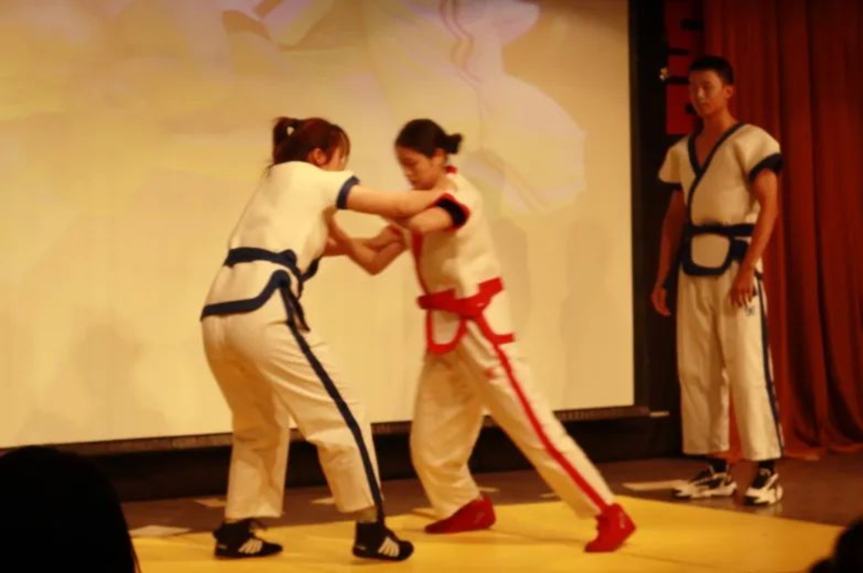 同学们听说1953年11月天津有“全国少数民族传统体育运动会”,非常兴奋,这时武术学院的同学上台展现了一段精彩绝伦的武术表演。