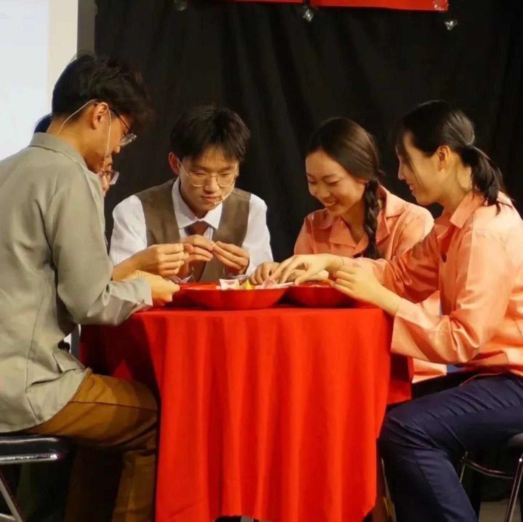 在第二幕食堂结婚的热闹气氛下,在场的观众们都忍俊不禁。