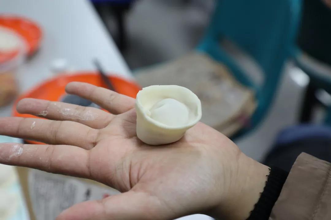 其中,中国传统的花边饺和韩式的圆饺吸引大家纷纷前来求教,同学们互相夸赞着,其乐融融。